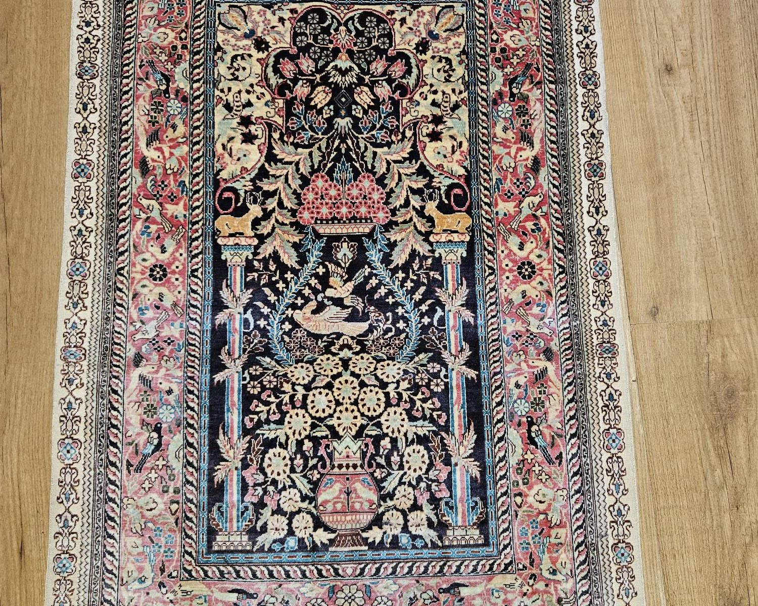 107×61 vintage handgeknoopt oosters tapijt Hereke zijde ID31769
