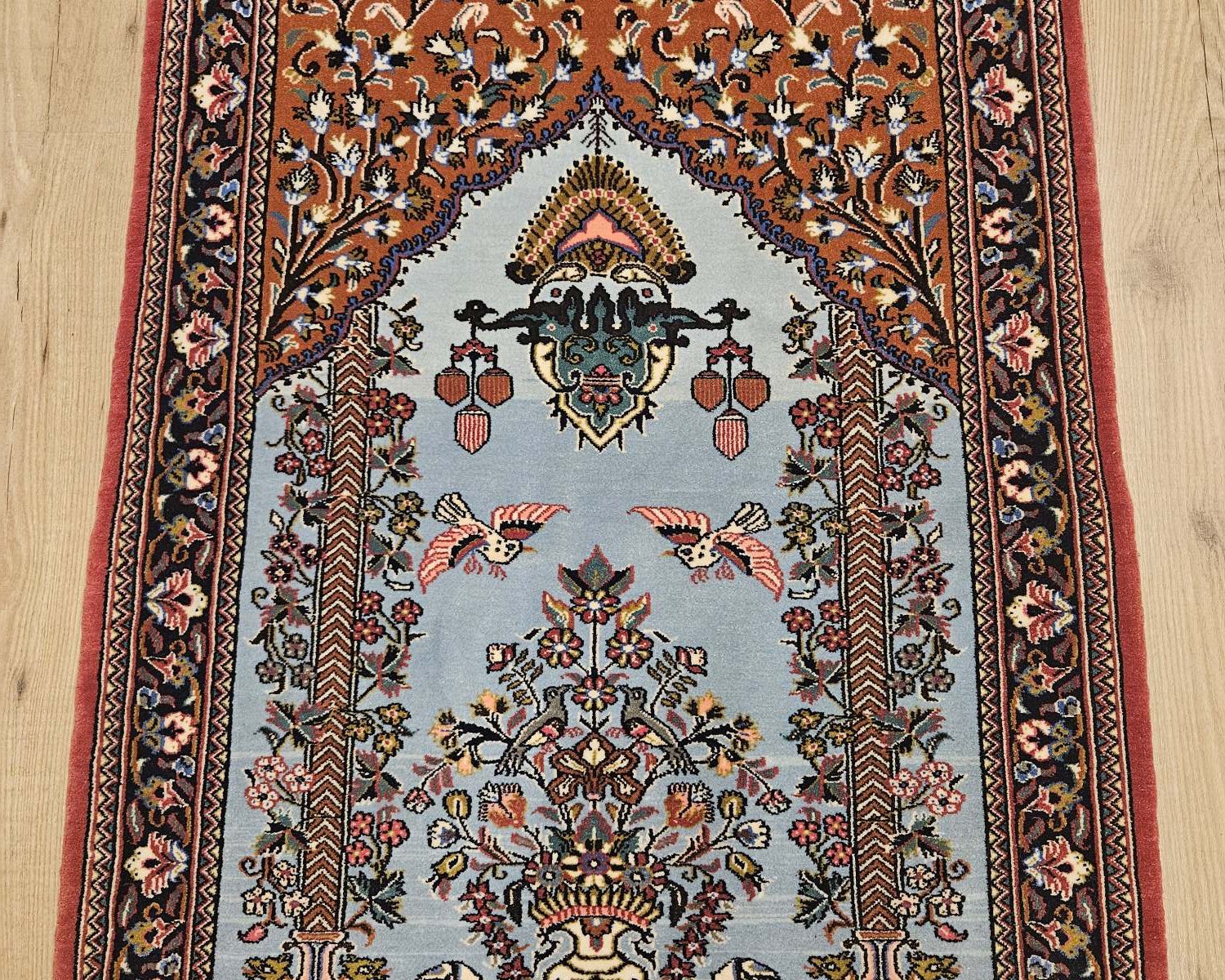 Het kleed is prachtig van kleur en de wol is zacht en soepel.