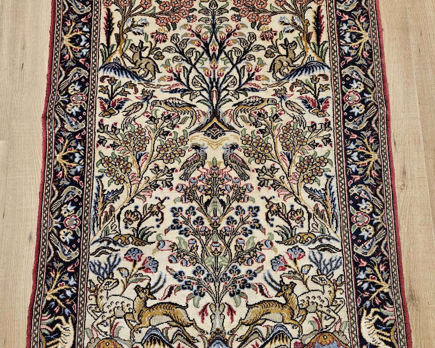 Het kleed is prachtig van kleur en fijngeknoopt.