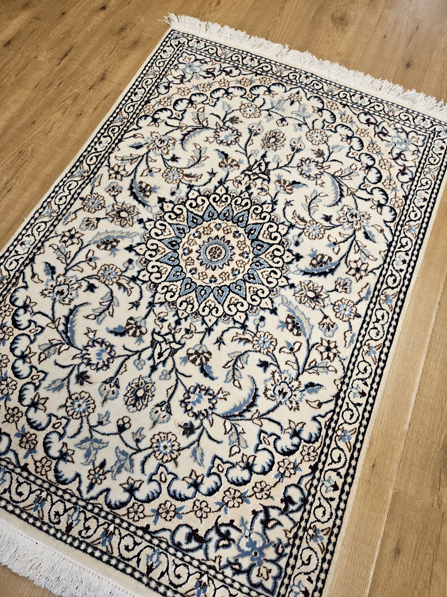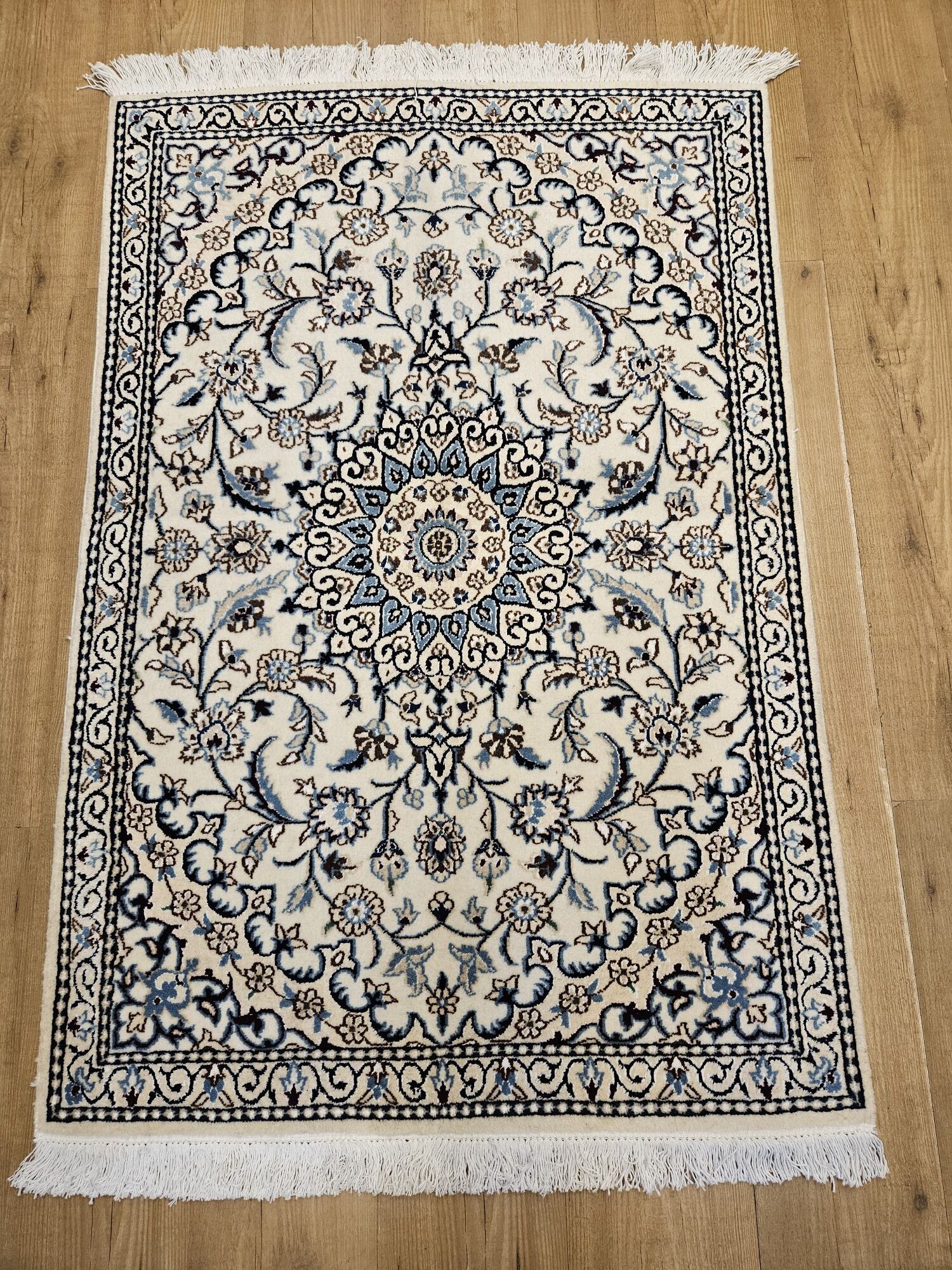 Vintage handgeknoopt perzisch tapijt nain 9la met zijde in zeer goede staat, geknoopt in iran