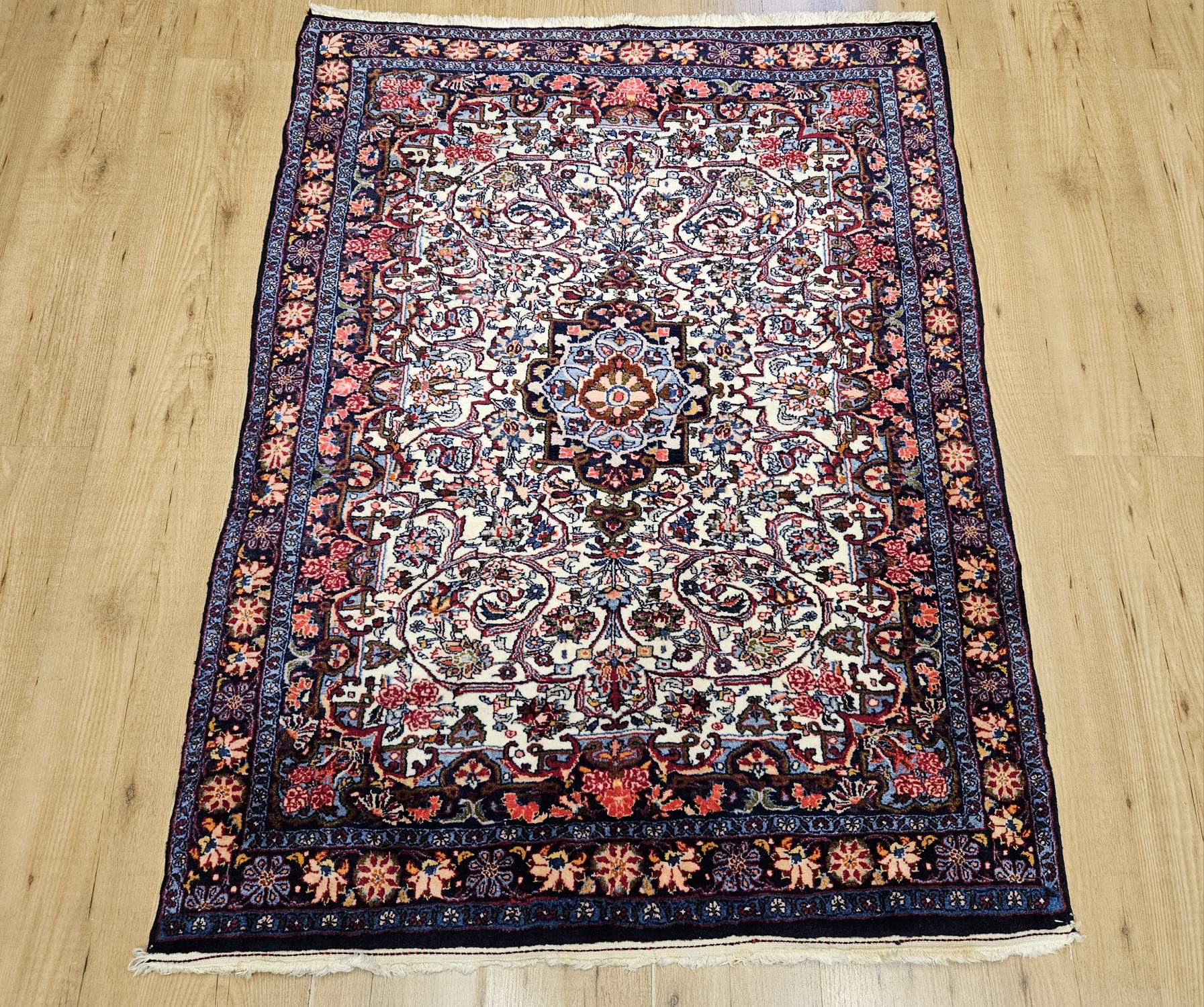 142×107 vintage handgeknoopt perzisch tapijt bidjar ID32591