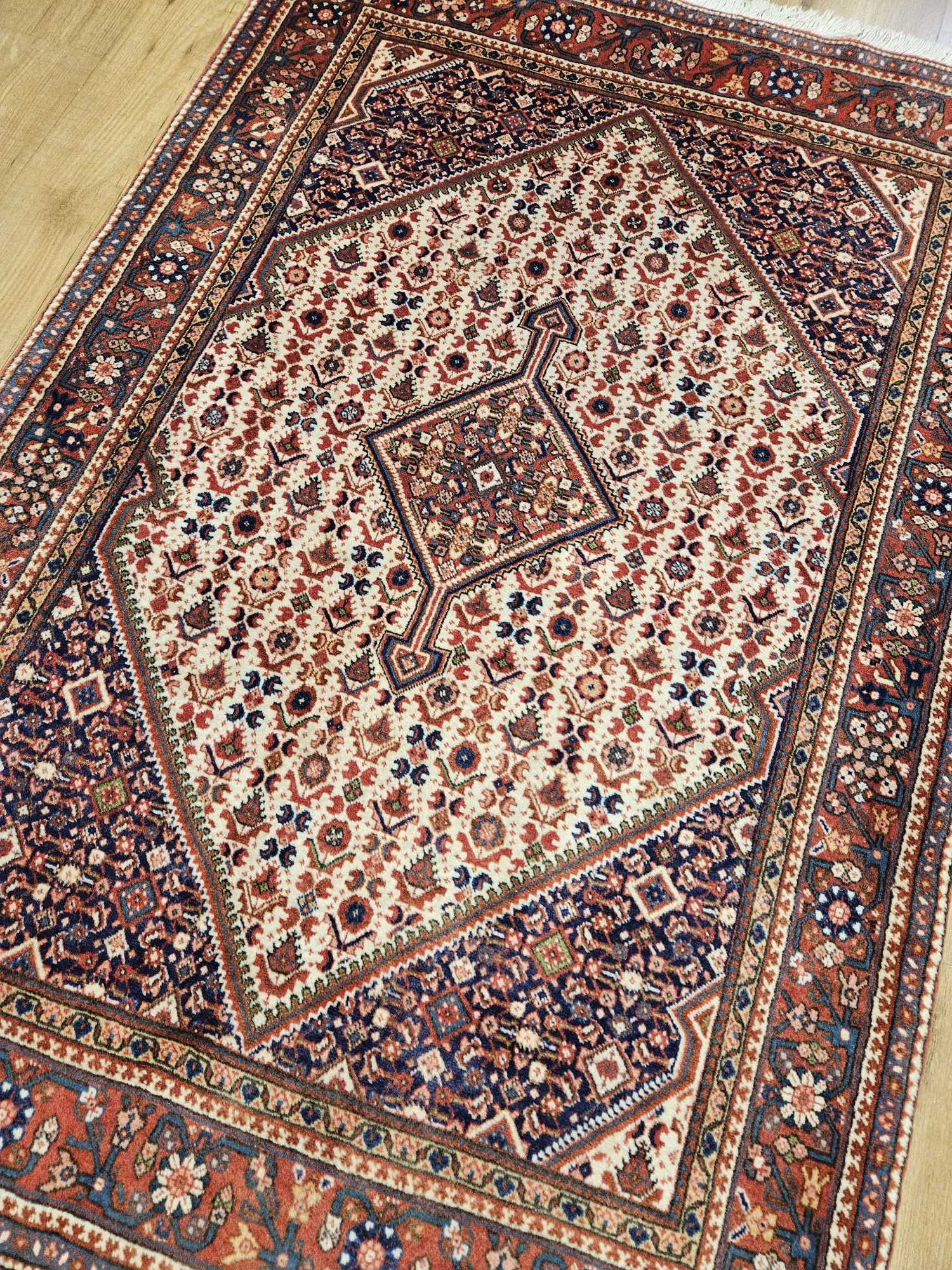 Het kleed is prachtig van kleur en de wol is zacht en soepel.