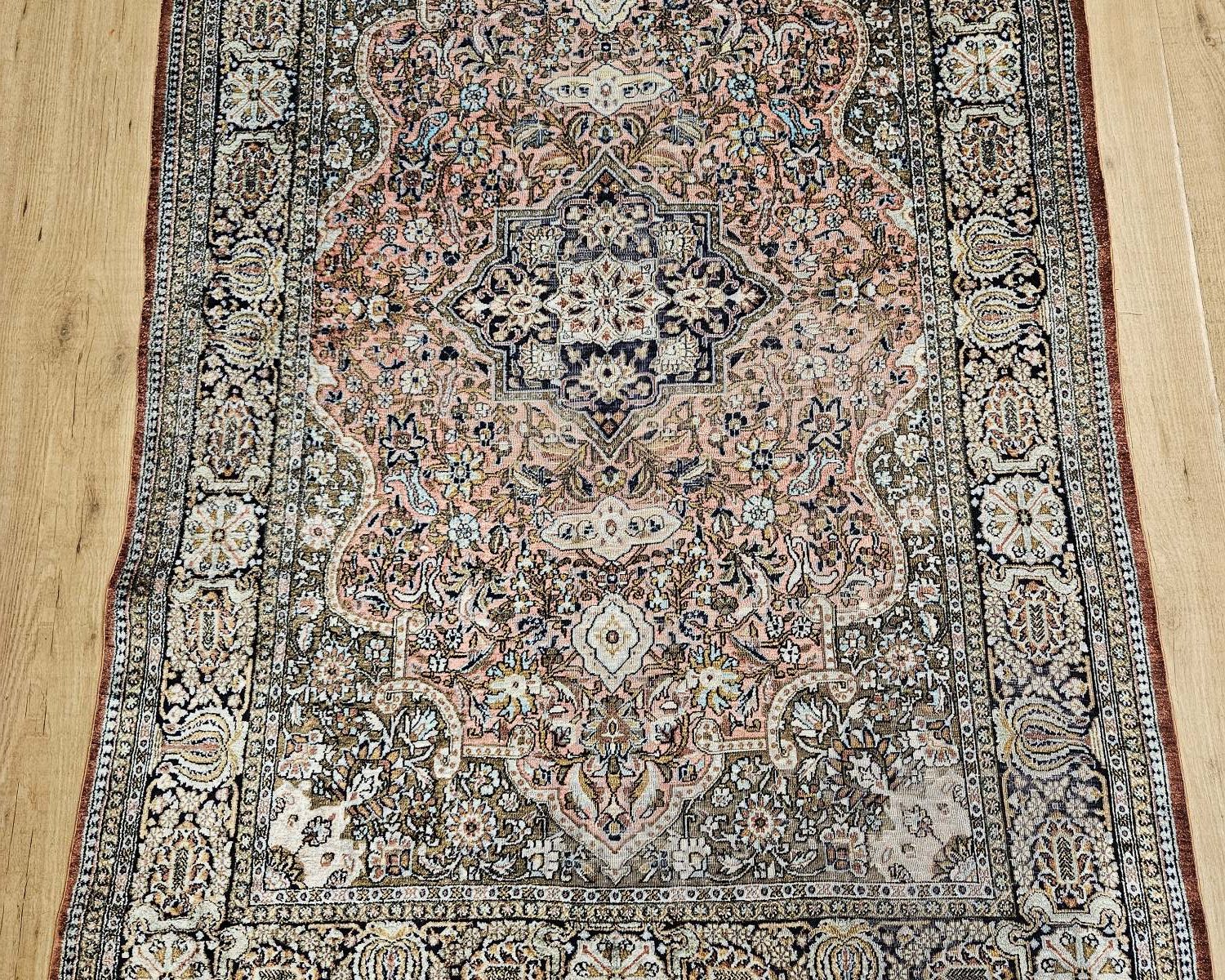 170×110 vintage handgeknoopt perzisch tapijt ghom zijde ID32539