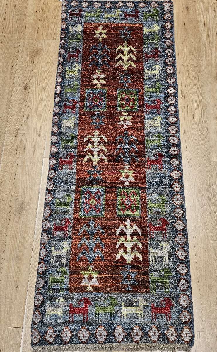 Handgeknoopt oosters tapijt loper moderndesign, wol op katoen geknoopt in afghanistan.