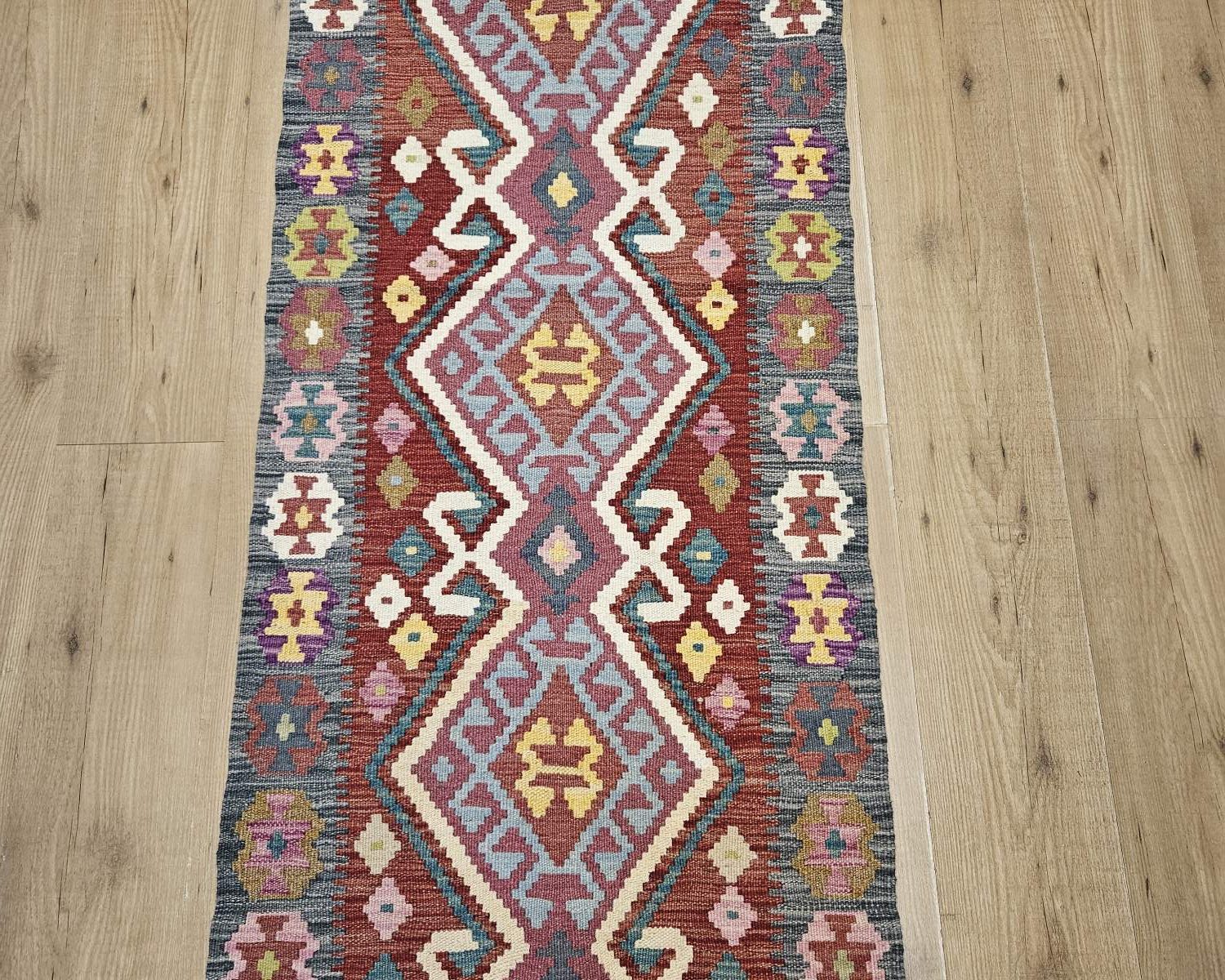 Handgeweven oosterse wollen kelim loper, wol op wol geweven in afghanistan.