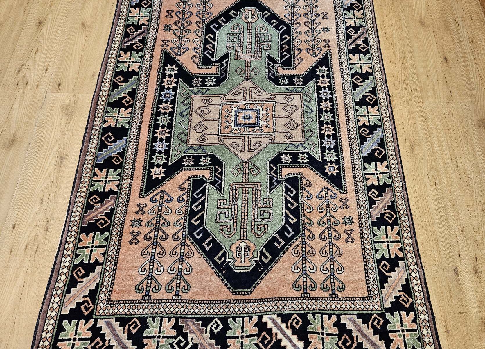 Vintage handgeknoopt oosters tapijt in goede staat, geknoopt in turkije.