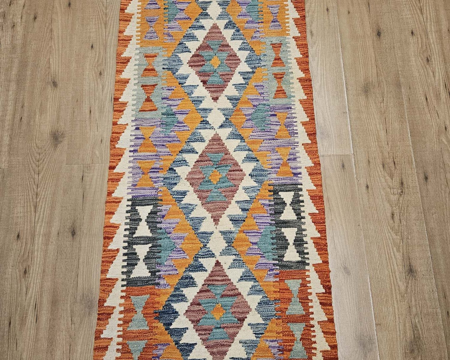 187×67 handgeweven oosterse wollen kelim loper ID32975