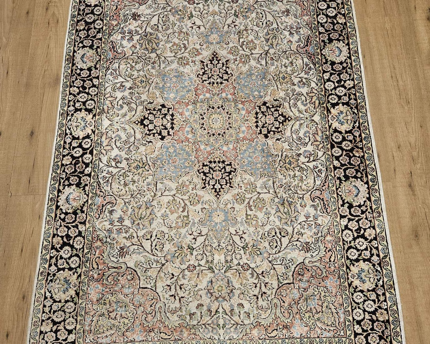 Vintage handgeknoopt perzisch tapijt kashmir zijde in zeer goede staat, geknoopt in india.