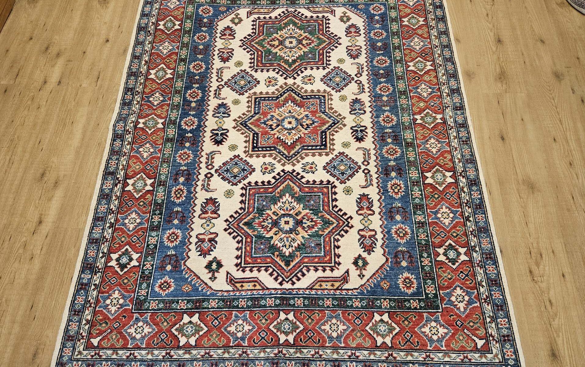 Handgeknoopt oosters tapijt kazak, wol op katoen geknoopt in afghanistan.