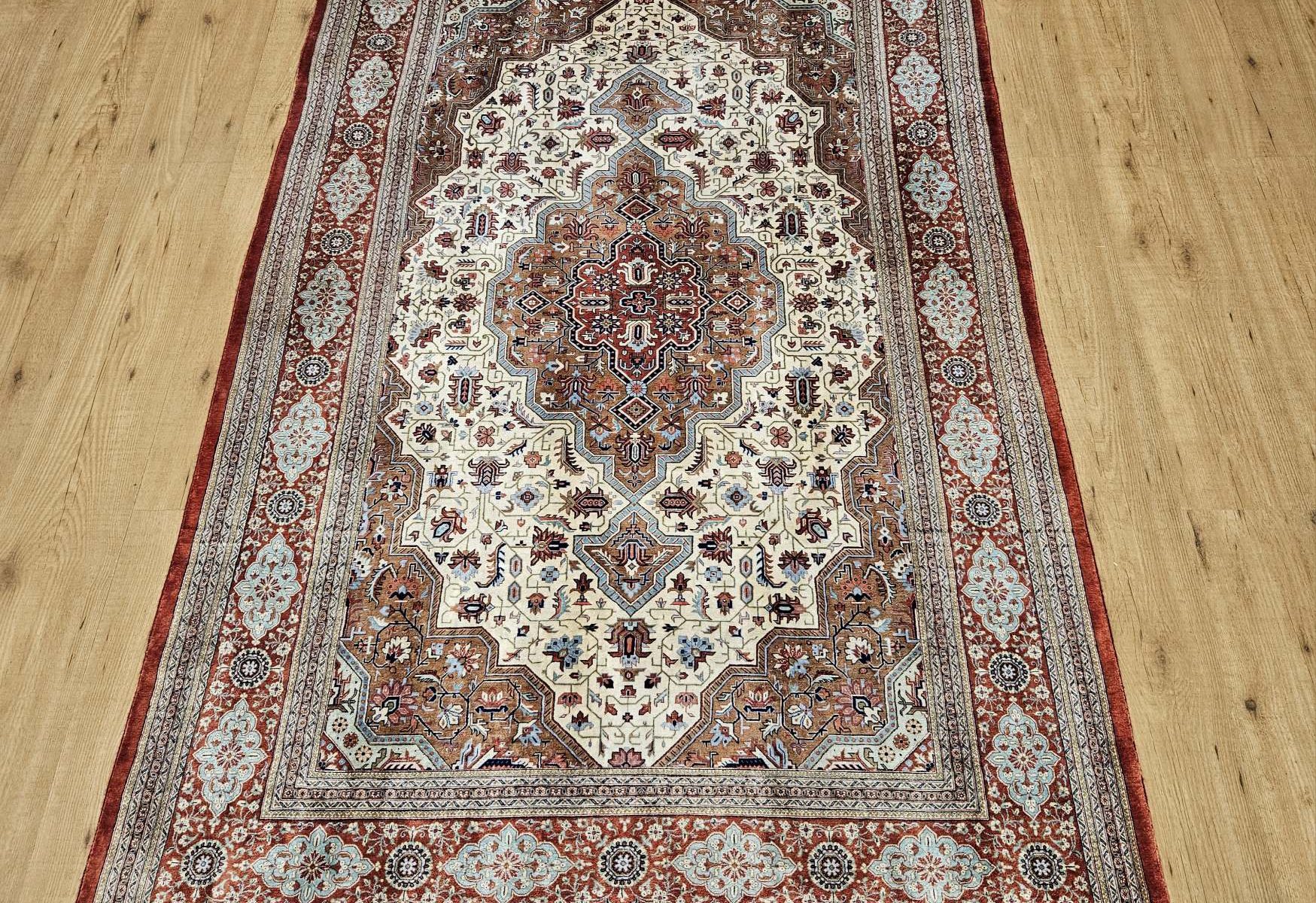 Vintage handgeknoopt perzisch tapijt ghom zijde in zeer goede staat, geknoopt in iran.