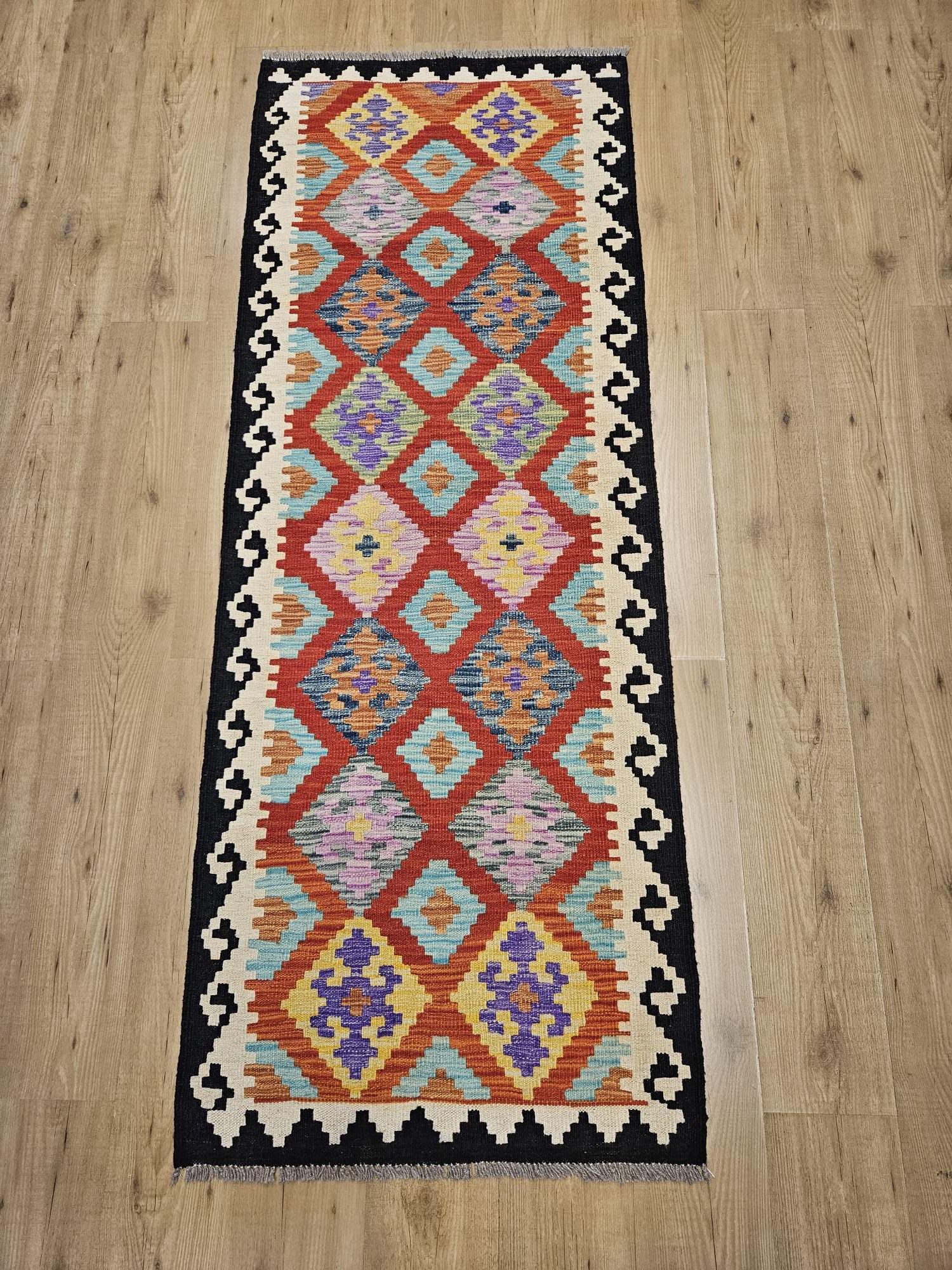 Handgeweven oosterse wollen kelim loper geweven in afghanistan.