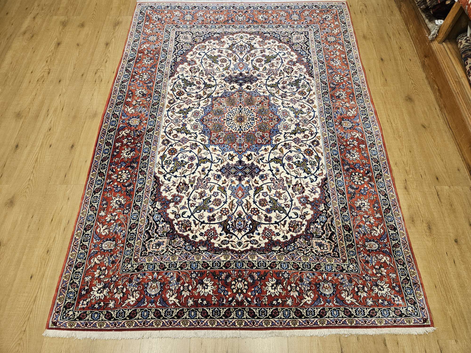 Vintage handgeknoopt perzisch tapijt isfahan, wol op zijde geknoopt in iran.