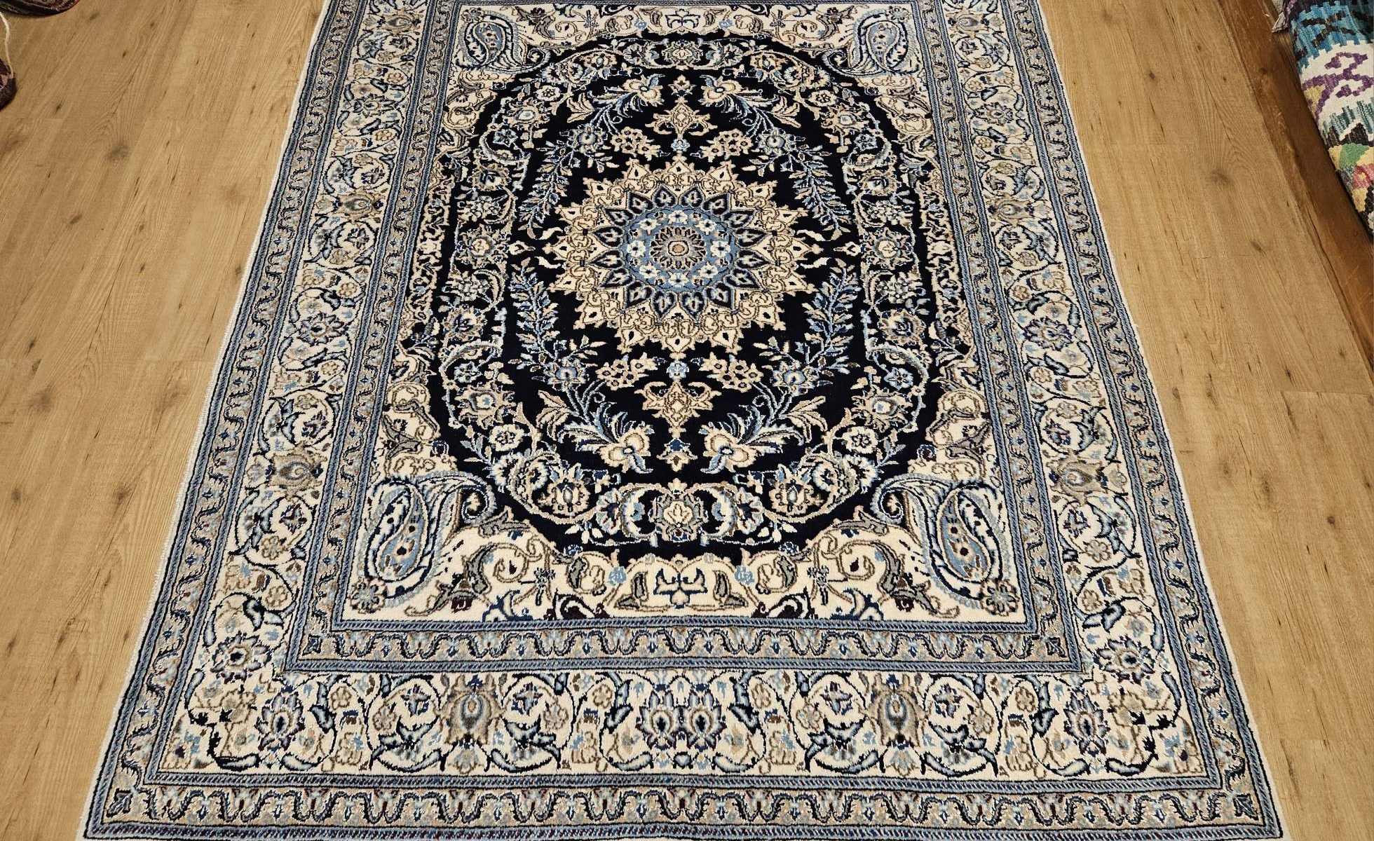 Vintage handgeknoopt perzisch tapijt nain in goede staat, geknoopt in iran.