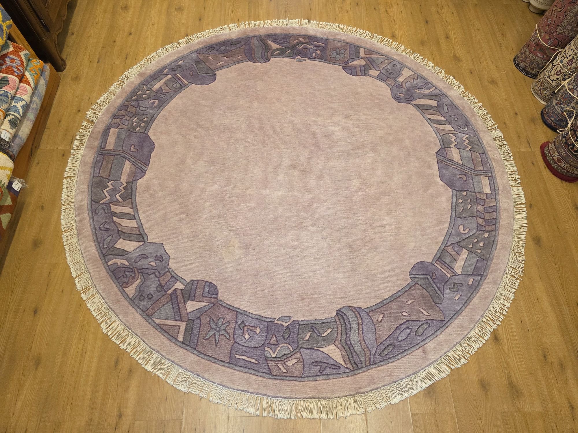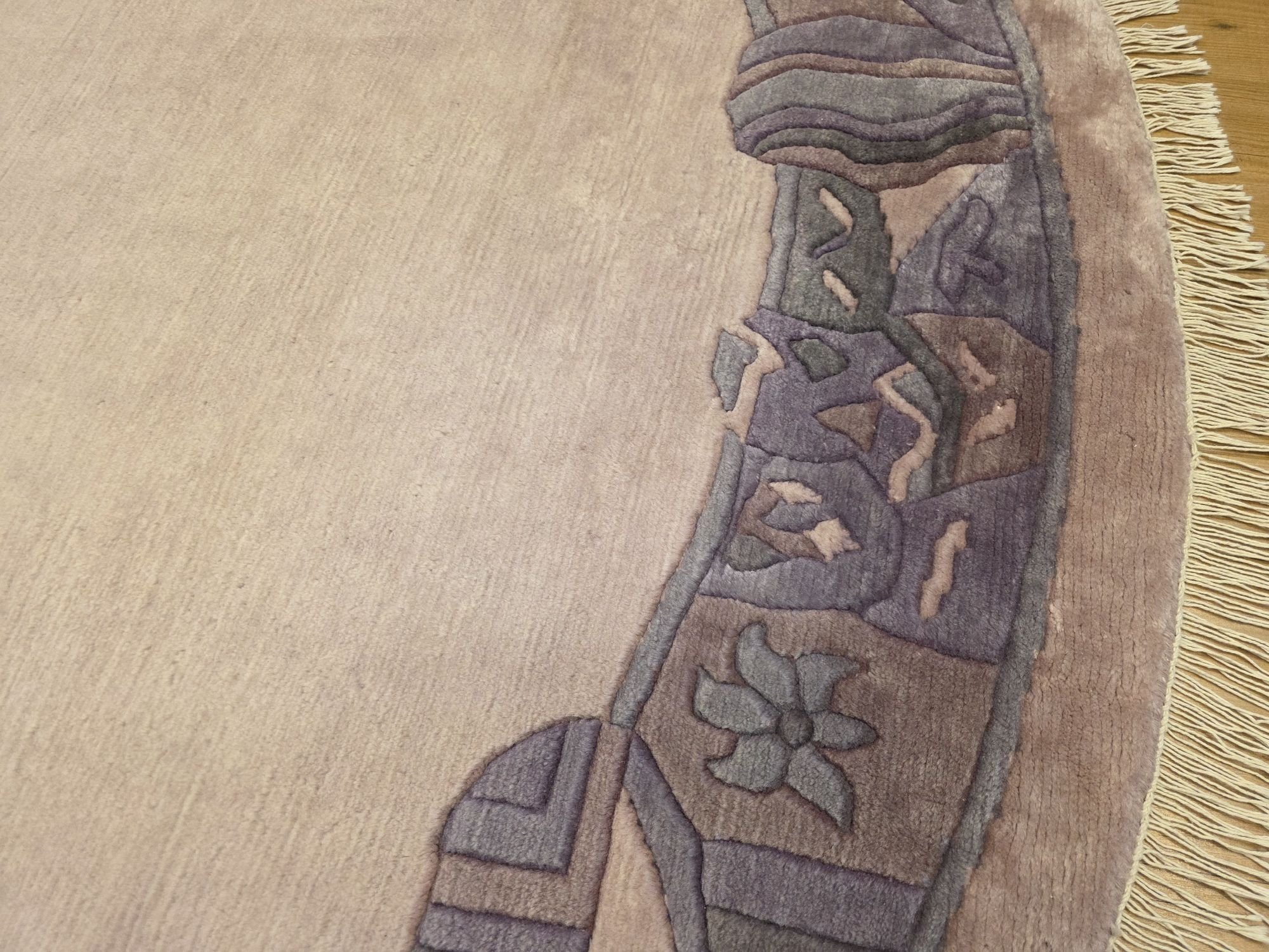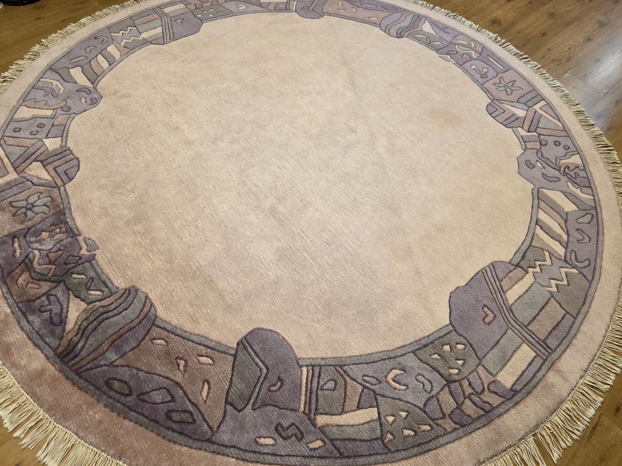 Handgeknoopt oosters tapijt modern rond, wol op katoen geknoopt in Nepal.