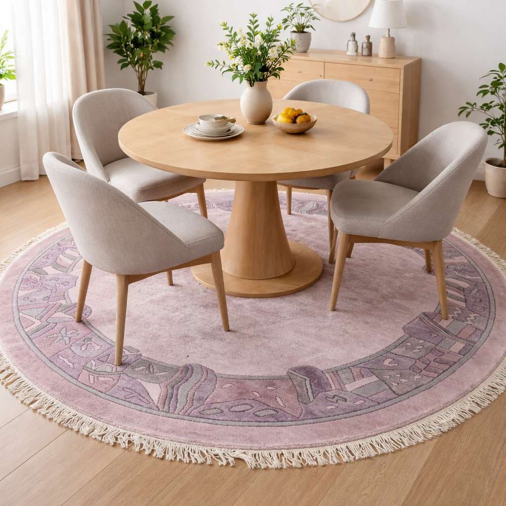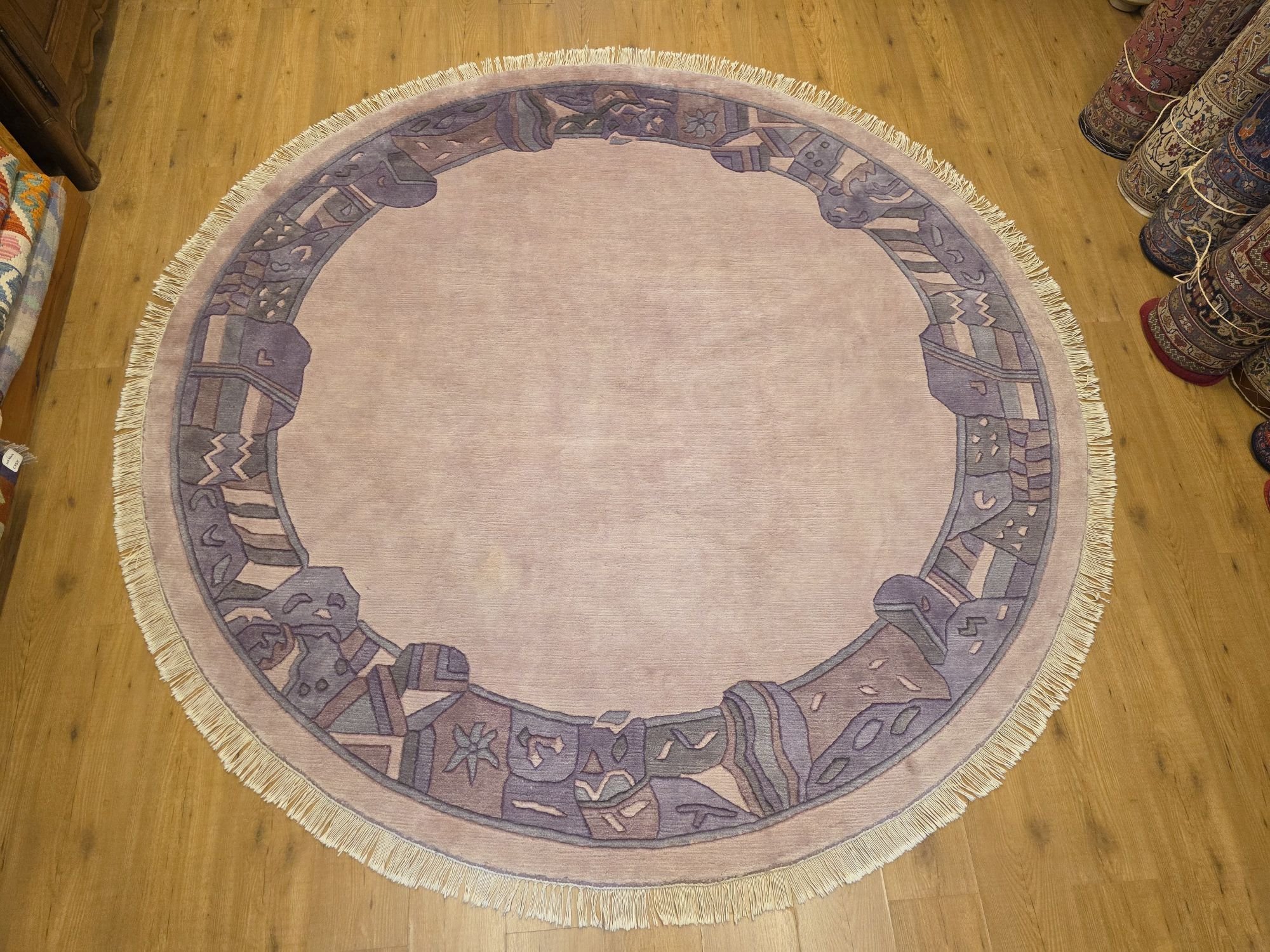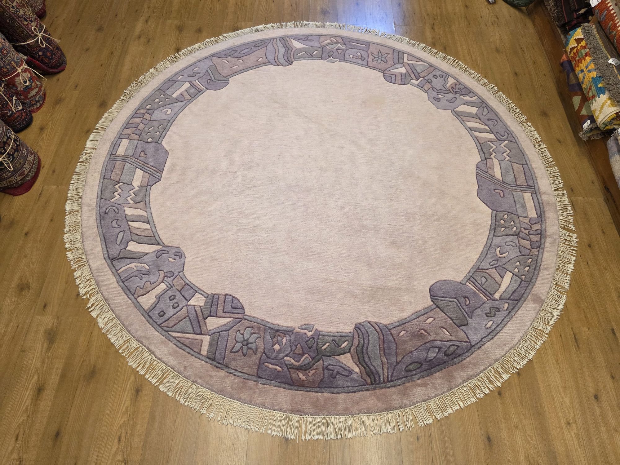 Handgeknoopt oosters tapijt modern rond, wol op katoen geknoopt in Nepal.