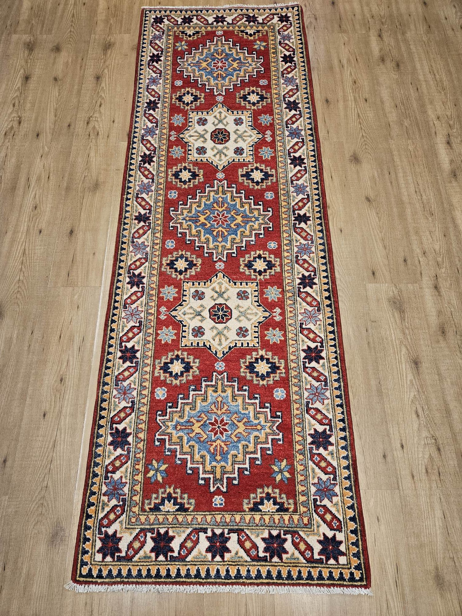 Handgeknoopt oosters wollen tapijt loper kazak, geknoopt in afghanistan.