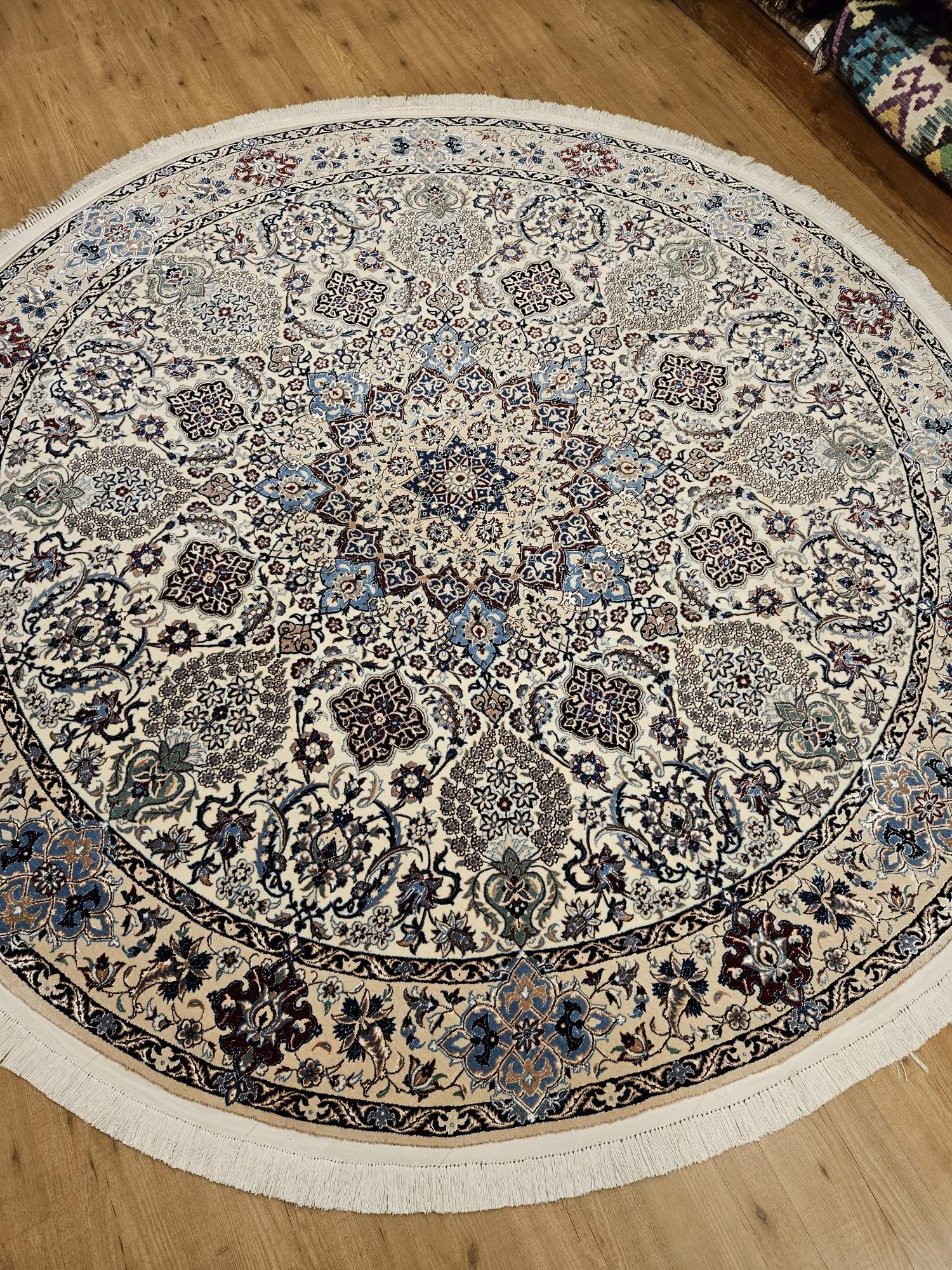 260 rond vintage handgeknoopt perzisch tapijt nain ID33095