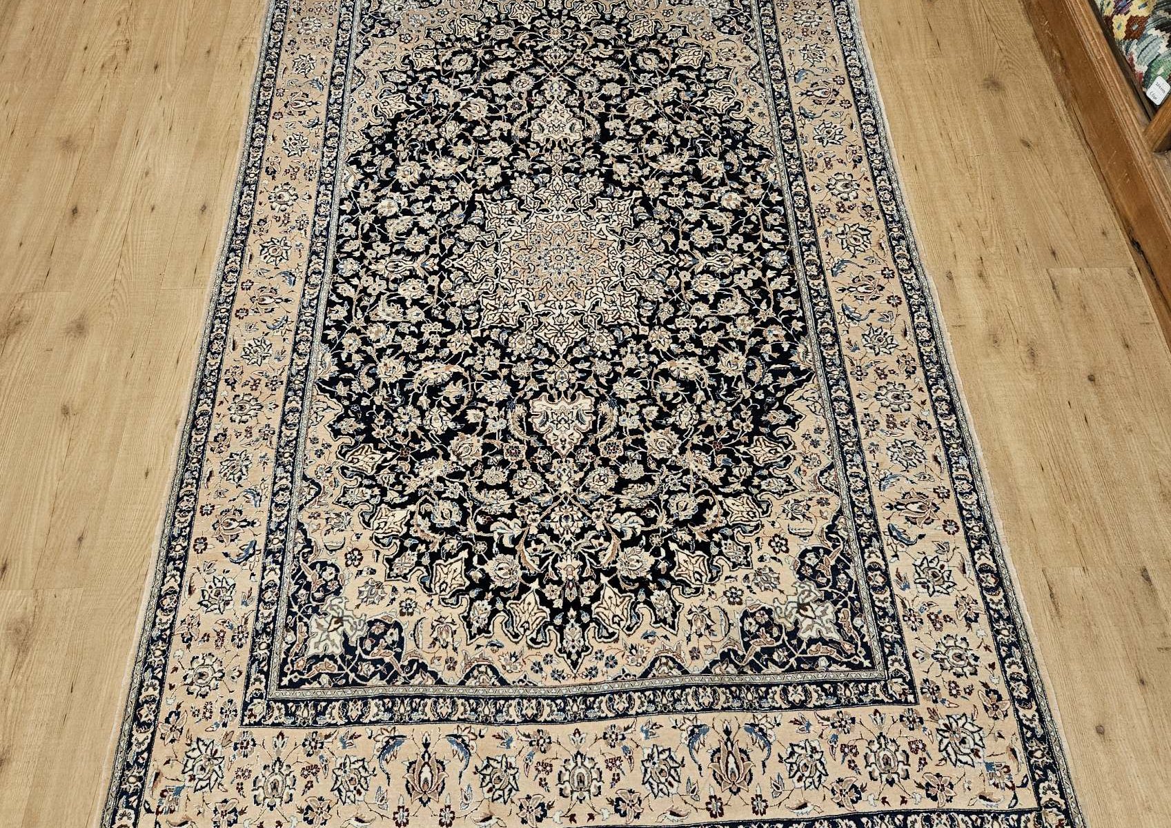 Vintage handgeknoopt perzisch tapijt nain 6la met zijde in goede staat, geknoopt in iran.