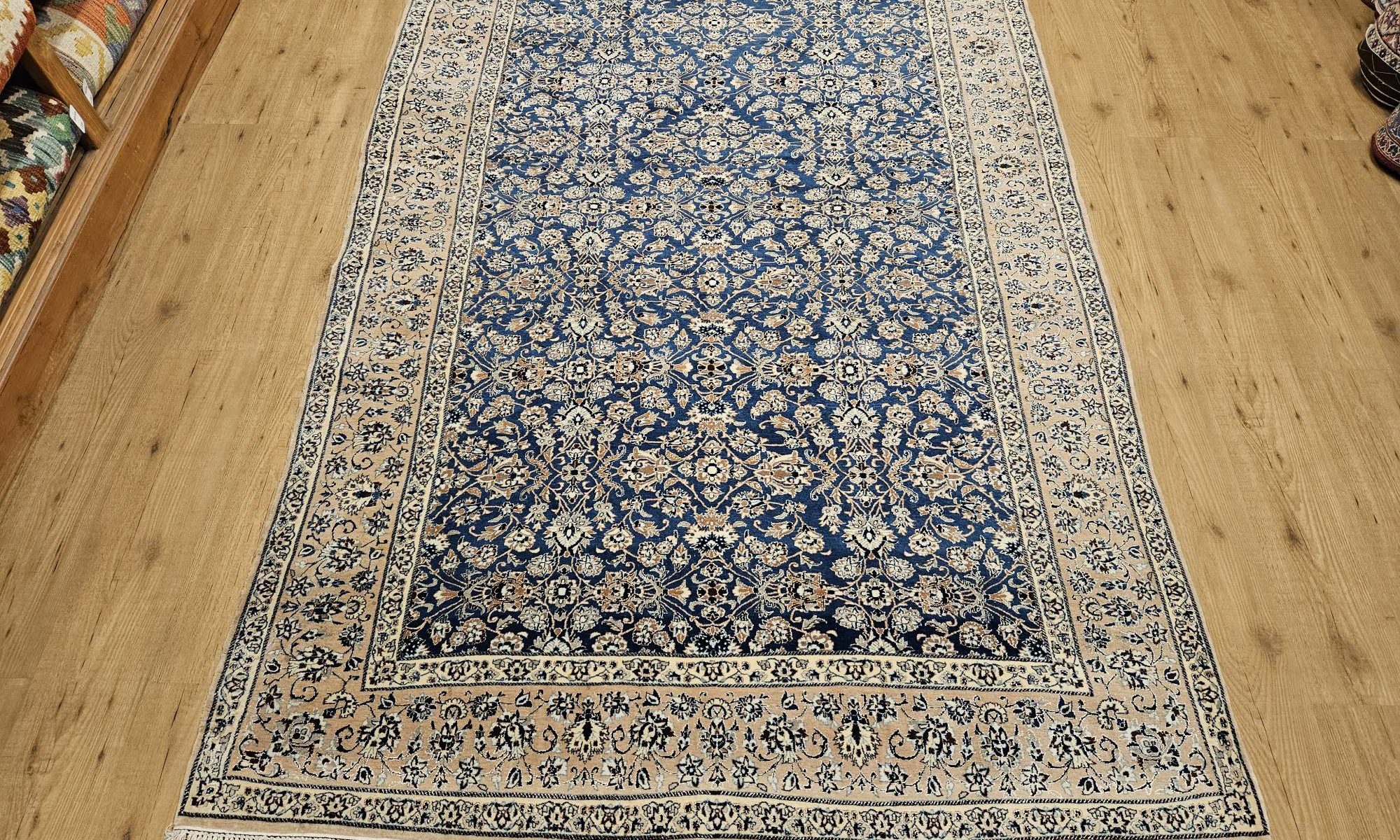 Vintage handgeknoopt perzisch tapijt nain 6la met zijde in goede staat, geknoopt in iran.