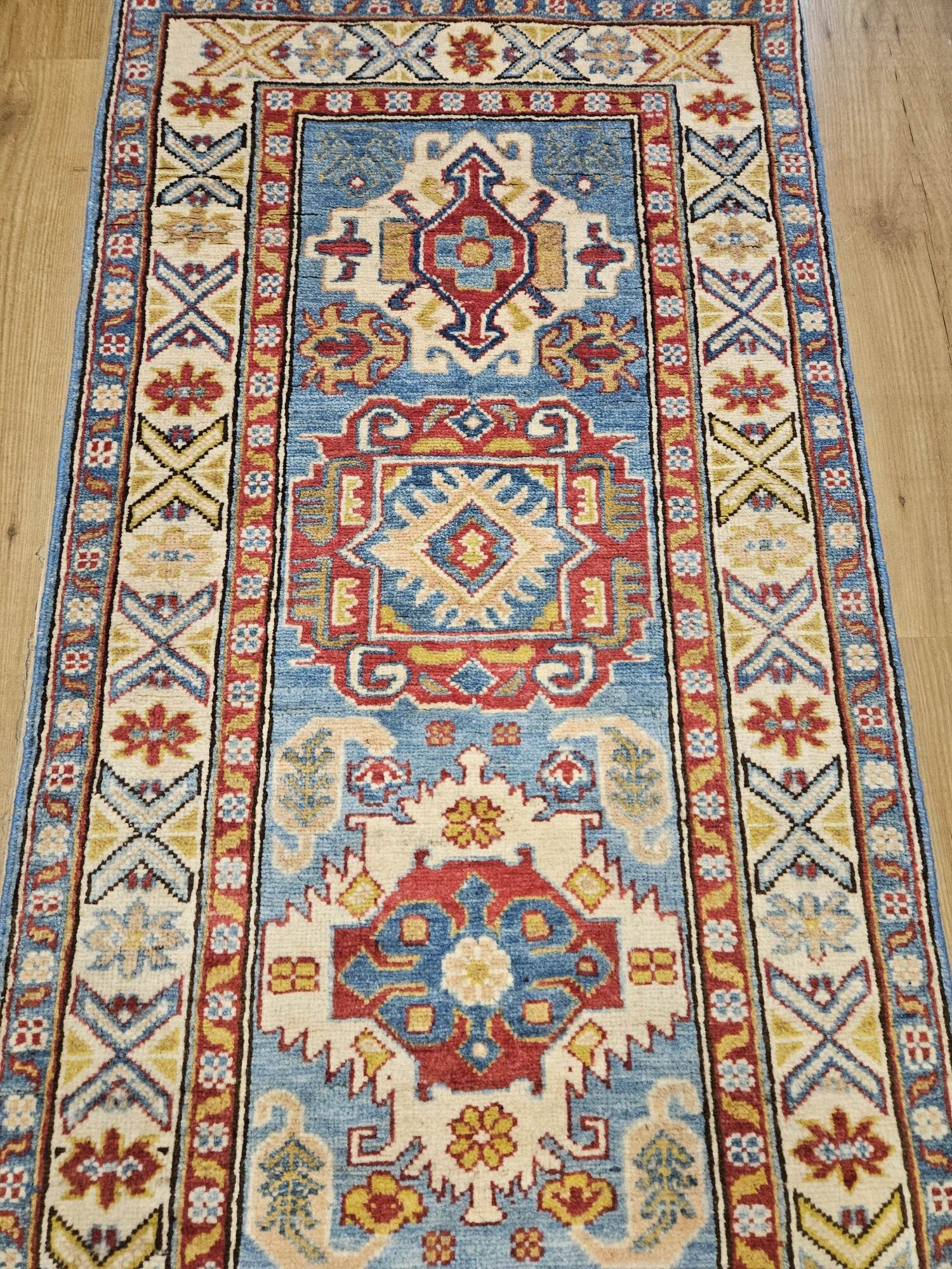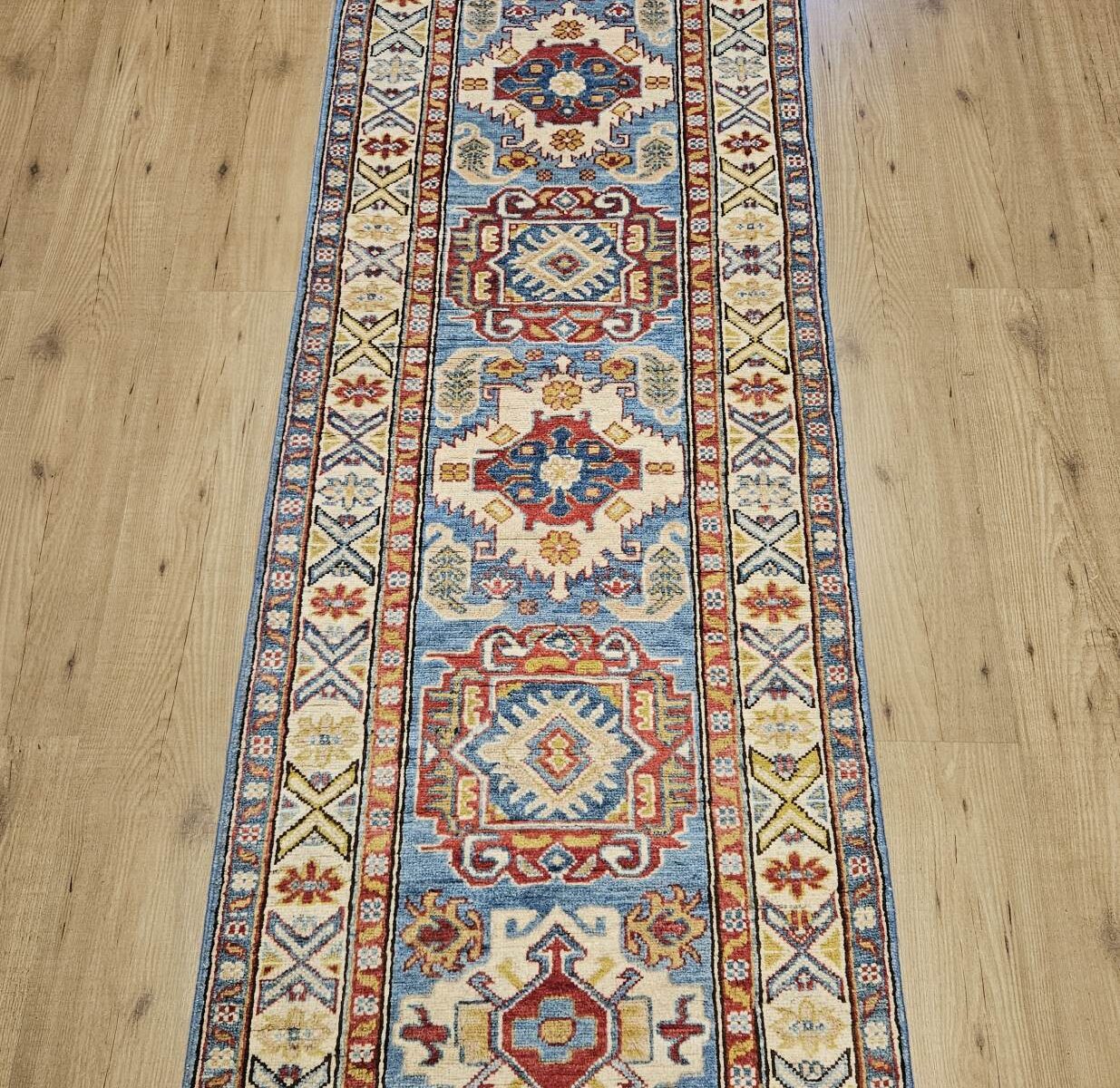 Handgeknoopt oosters tapijt loper kazak, wol op katoen geknoopt in afghanistan.