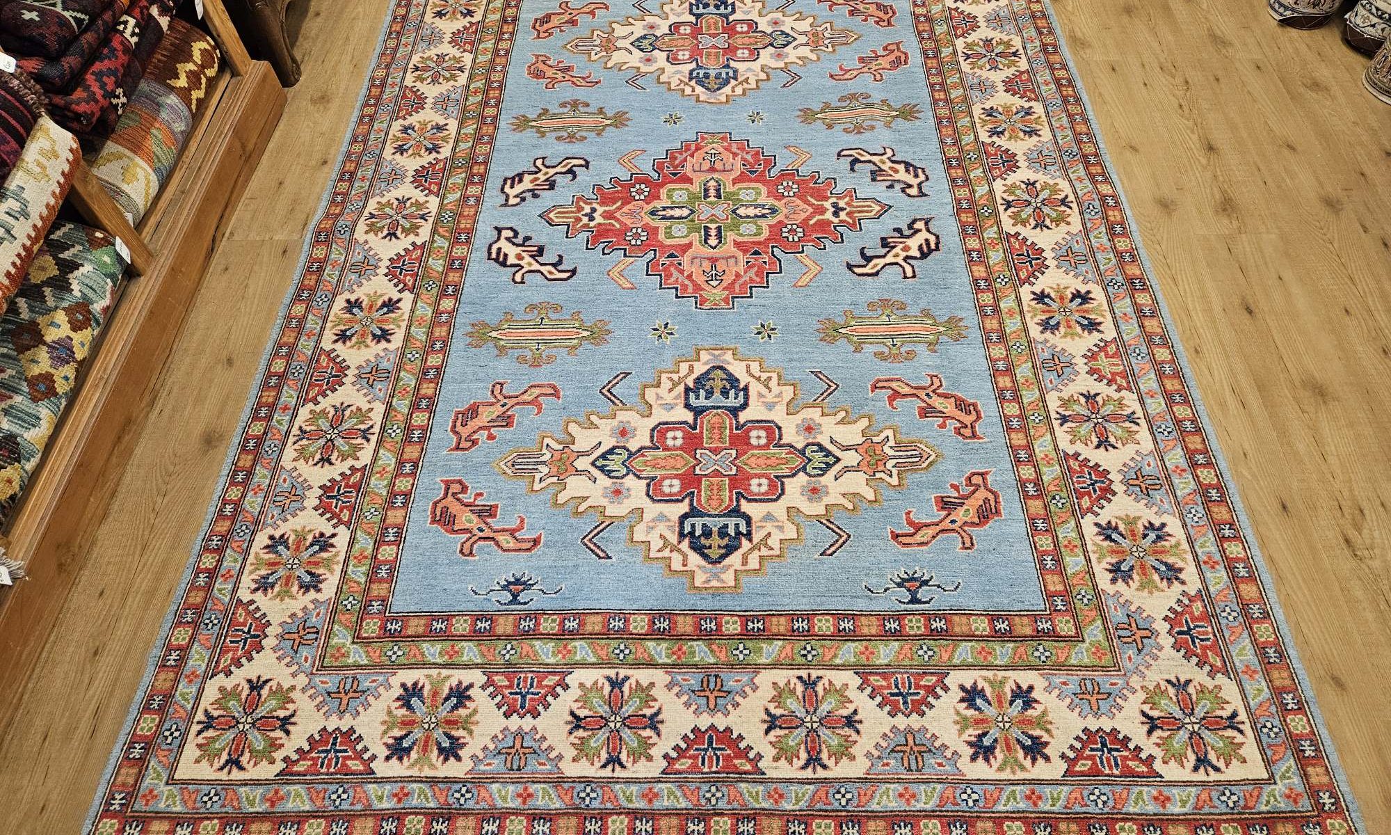 Handgeknoopt oosters tapijt kazak, wol op katoen geknoopt in afghanistan.