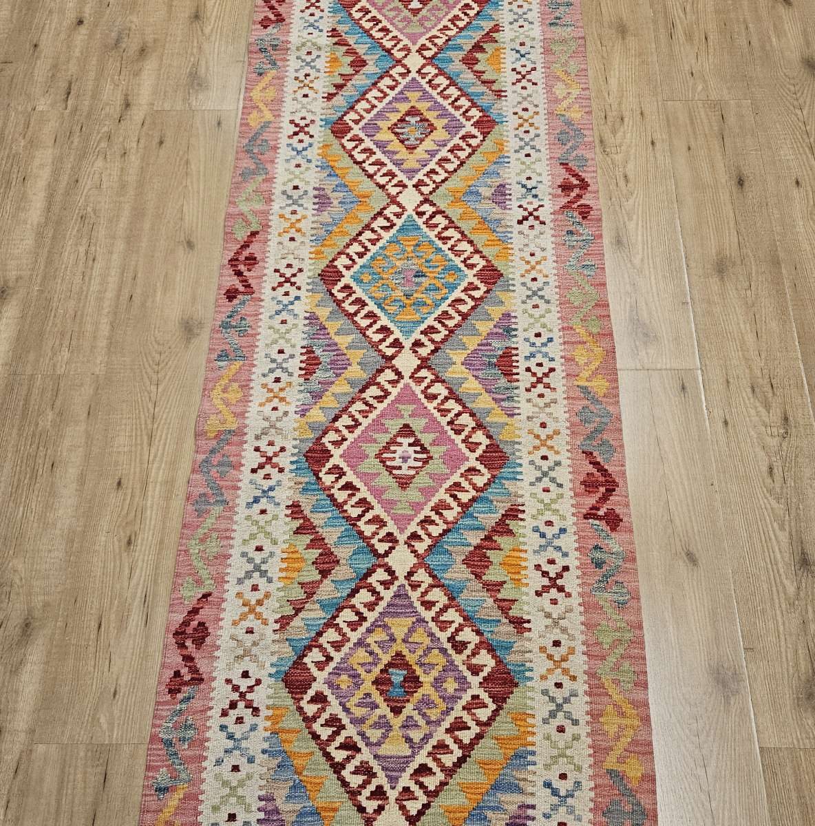 291×80 handgeweven oosterse wollen kelim loper ID32963