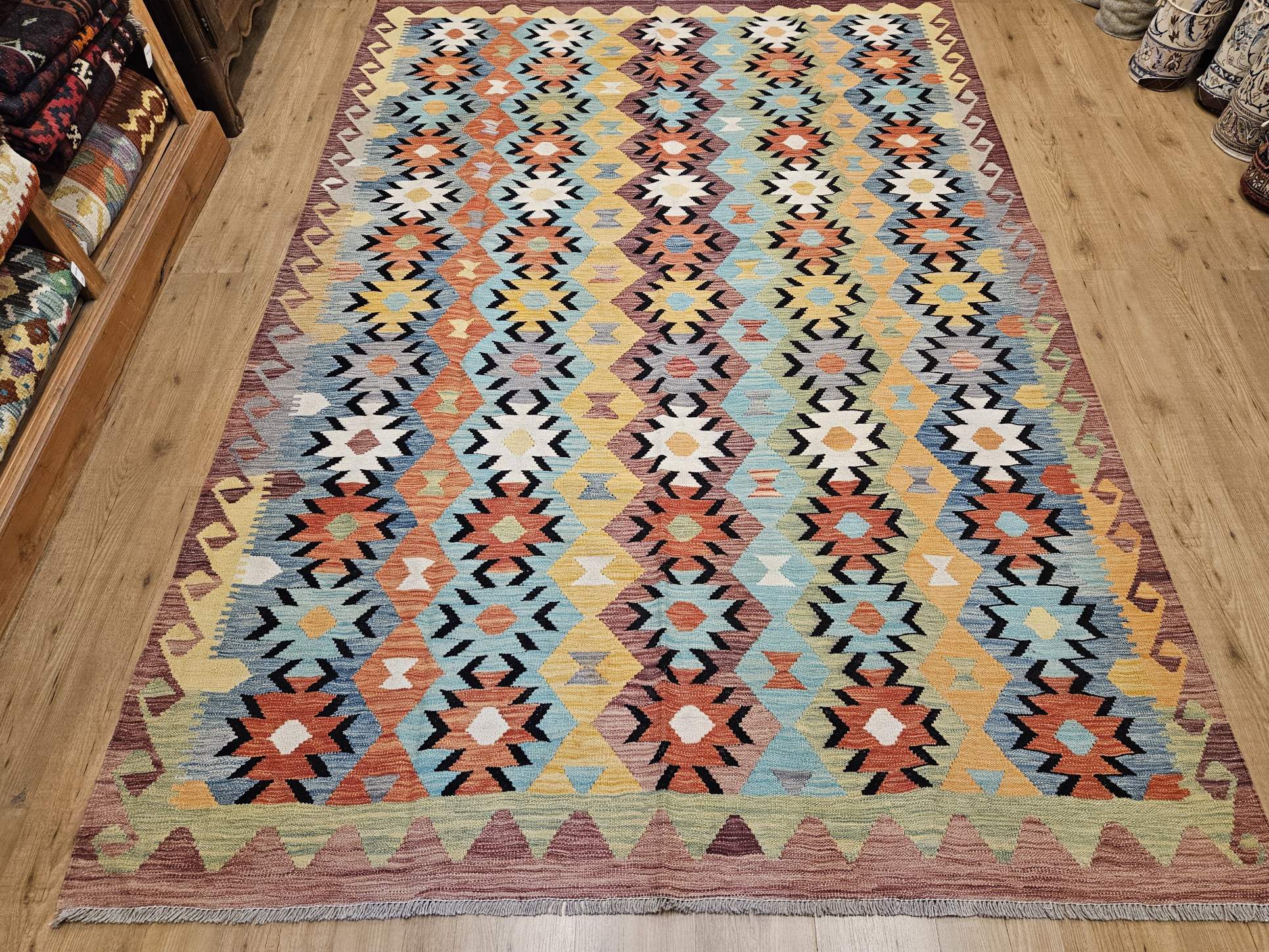Handgeweven oosterse wollen kelim, wol op wol geweven in afghanistan.