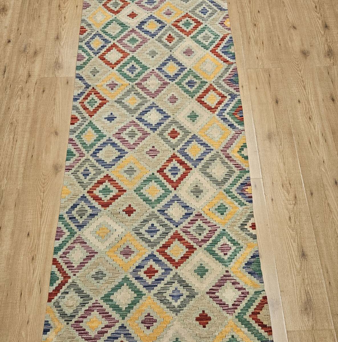 308×89 handgeweven oosterse wollen kelim loper ID32925