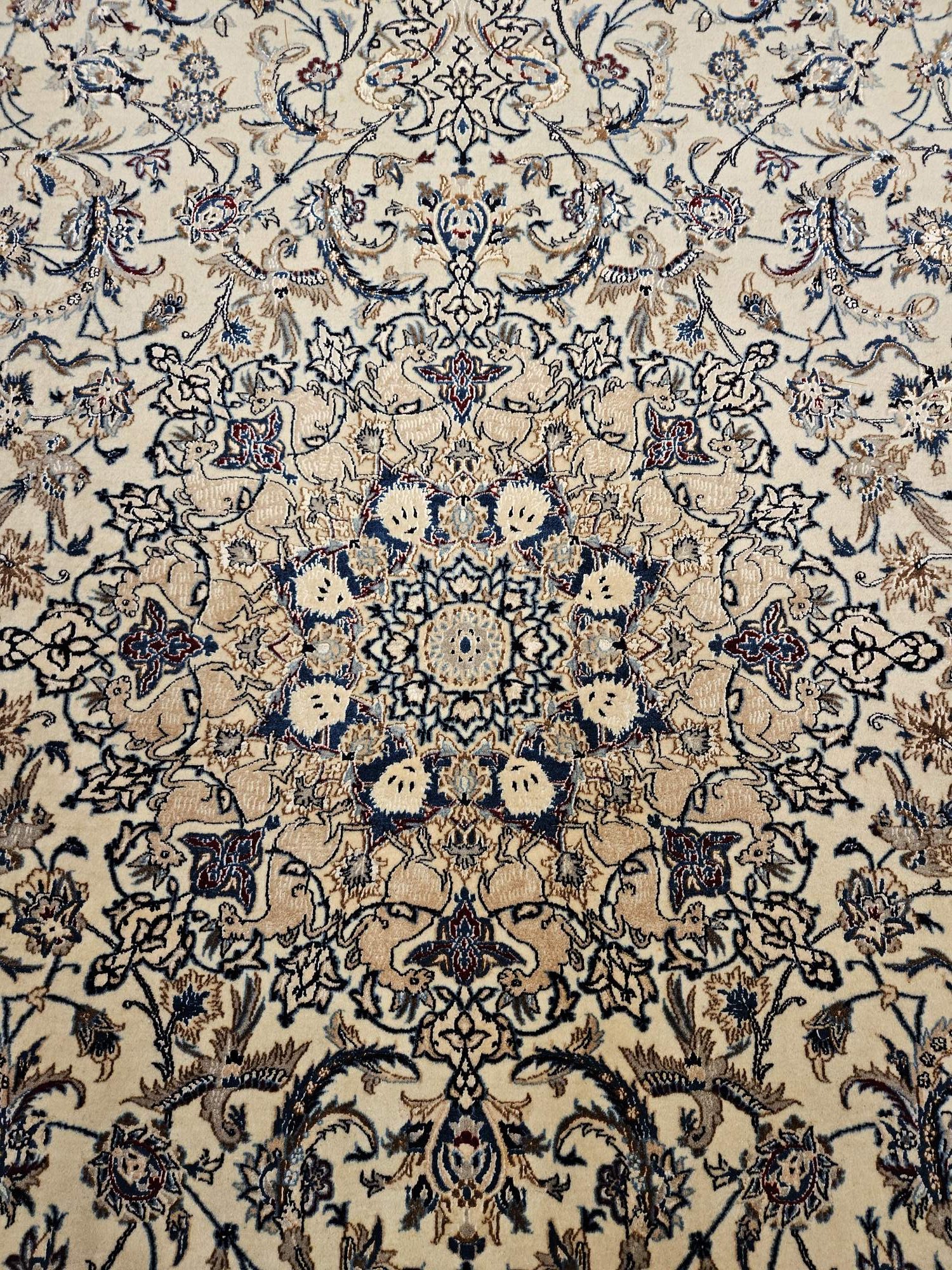 Vintage handgeknoopt perzisch tapijt nain 6la met zijde in zeer goede staat, geknoopt in iran.