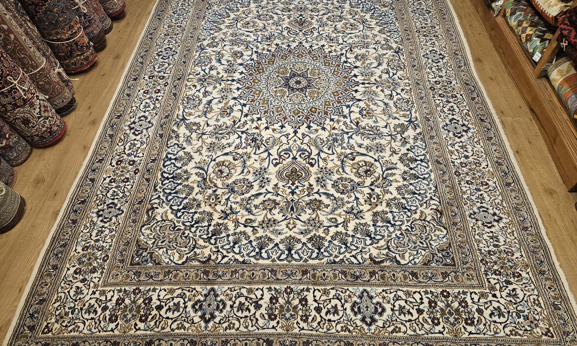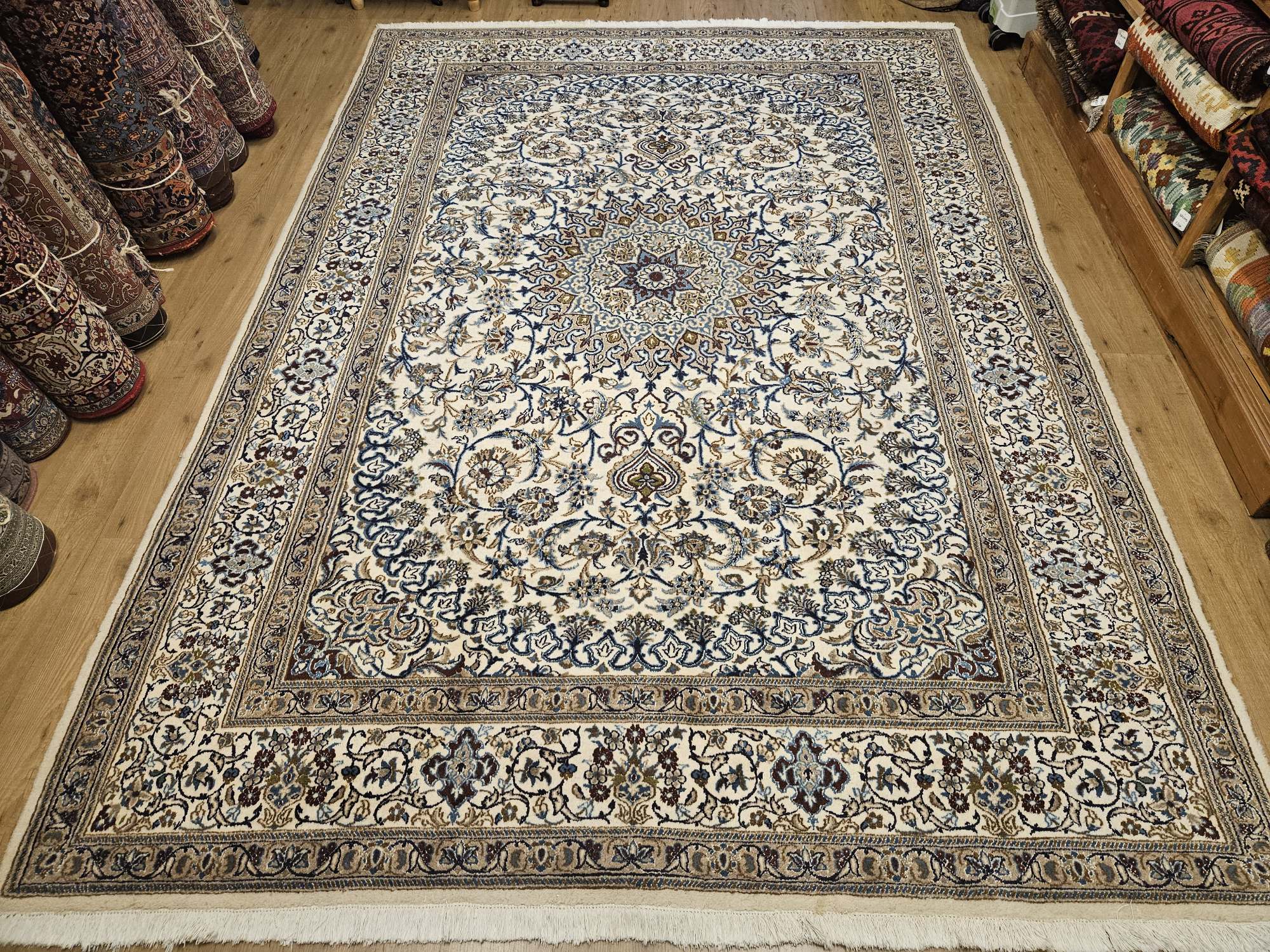 Vintage handgeknoopt perzisch tapijt nain in goede staat, geknoopt in iran.