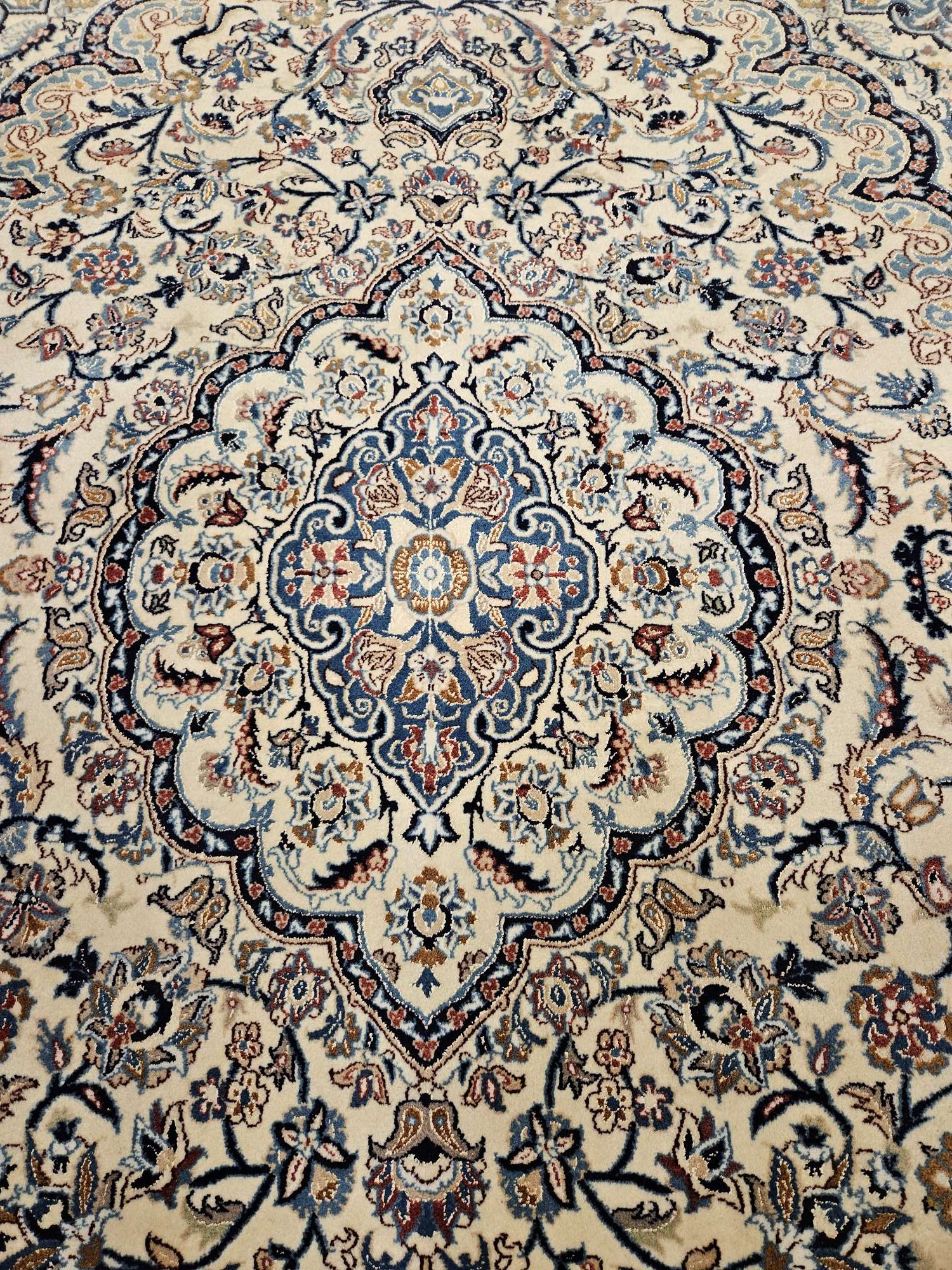 Het kleed is prachtig van kleur en fijngeknoopt.