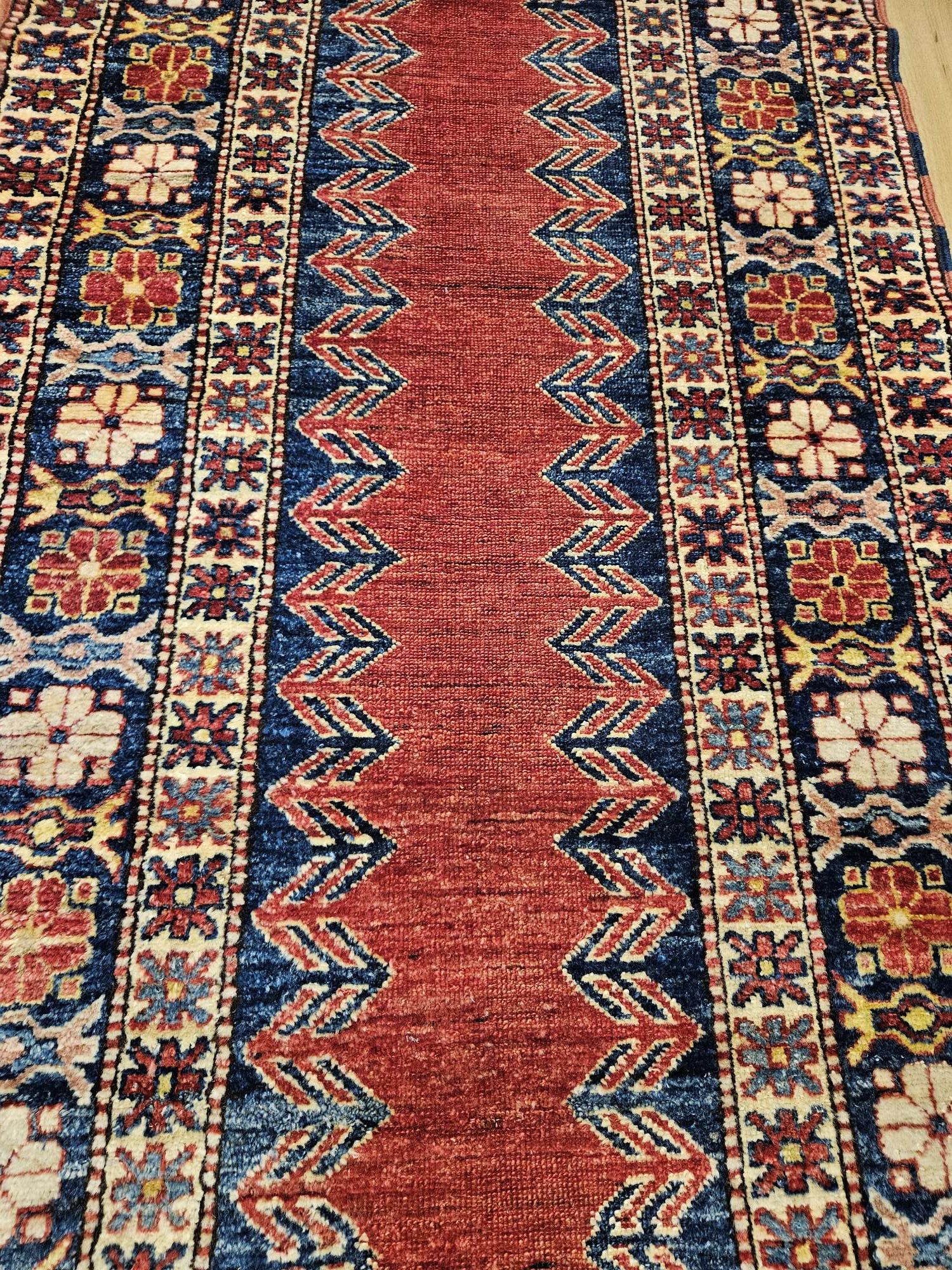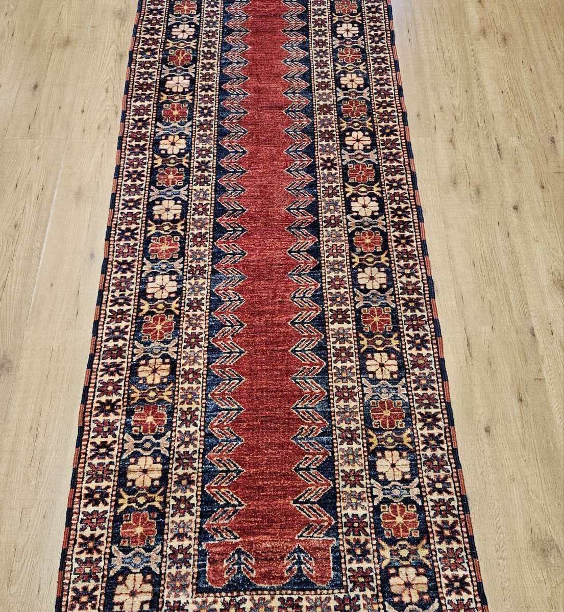 Vintage handgeknoopt oosters tapijt loper kazak in goede staat, geknoopt in afghanistan.
