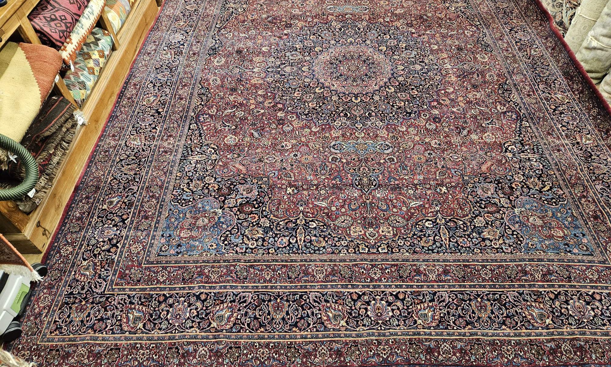 Het kleed is prachtig van kleur en fijngeknoopt.